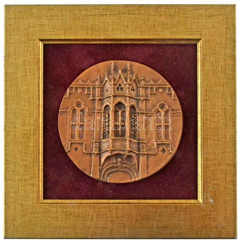 DN Gótikus templomot (Kolozsvári Szent Mihály templom?) ábrázoló, egyoldalas, öntött bronz plakett képkeretbe ragasztva (plakett: 97mm ; képkeret: 180x180mm) T:AU, karc a kereten