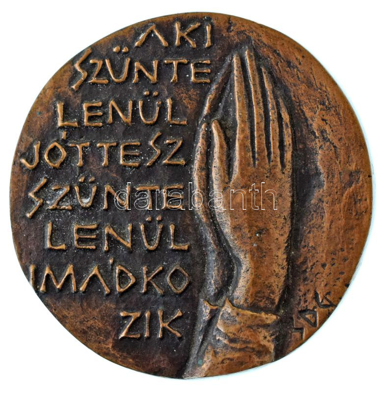 DN "..aki szüntelenül jót tesz szüntelenül imádkozik" egyoldalas, öntött bronz plakett. Szign.: SDG (69mm) T:AU