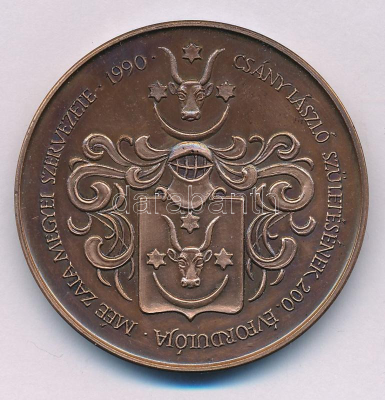 Description: Fritz Mihály (1947-) 1990. "Csány László / MLE Zala Megyei Szervezete 1990 - Csány László születésének 200. évfordulója" bronz kétoldalas emlékérem hibás "1848"-as évszámmal! T:AU patina