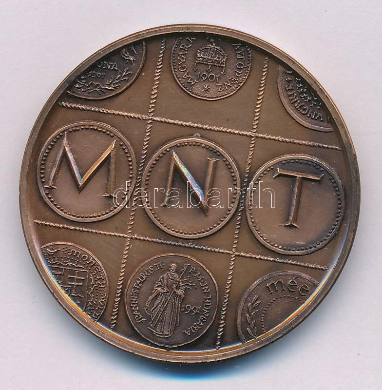Fritz Mihály (1947-) 1991. "90 éves a Magyar Numizmatikai Társulat / MNT" bronz kétoldals emlékérem (42,5mm) T:AU patina