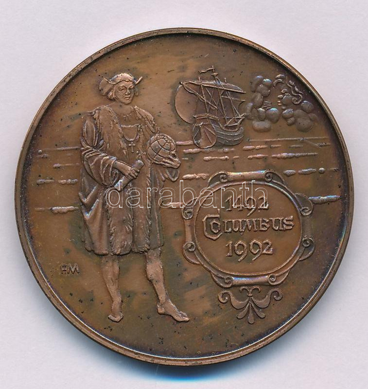 Fritz Mihály (1947-) 1992. "Columbus 1492-1992" kétoldalas bronz emlékérem (42,5mm) T:AU patina