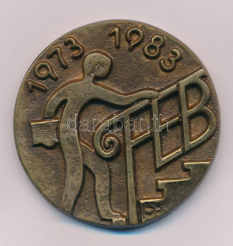 Lajos József (1936-) 1983. "1973-1983 FEB" egyoldalas, öntött bronz emlékérem eredeti műbőr tokban (50mm) T:AU