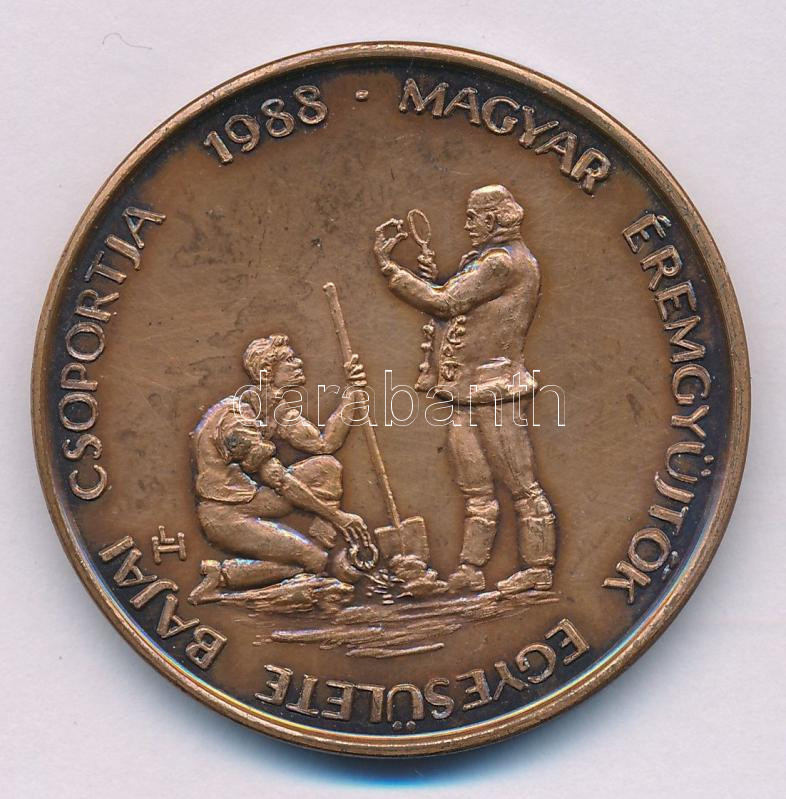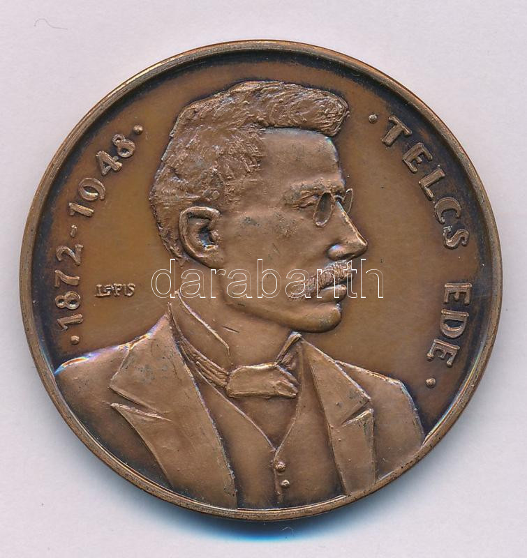 Lapis András (1942-) 1988. "Telcs Ede 1872-1948 / Magyar Éremgyűjtők Egyesülete Bajai Csoportja" kétoldalas bronz emlékérem (42,5mm) T:AU patina