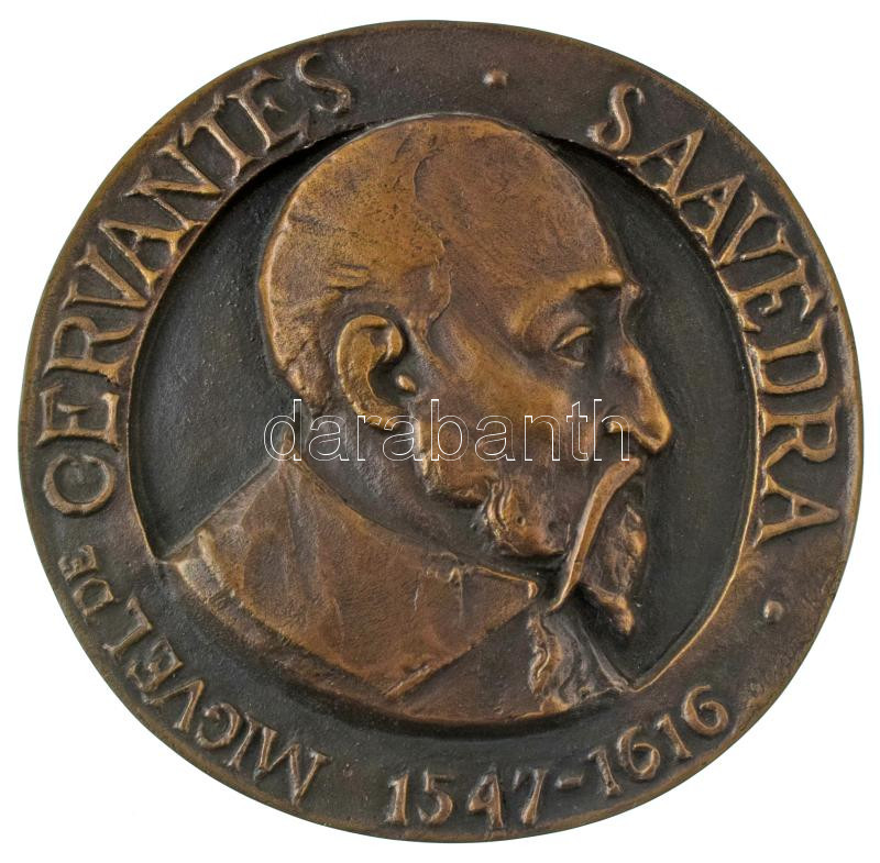 Olcsai Kiss Zoltán (1895-1981) DN "Miguel de Cervantes Saavedra 1547-1616" egyoldalas, nagyméretű öntött bronz plakett (~160mm) T:AU, hátoldalán falra akasztáshoz fúrt lyukakkal