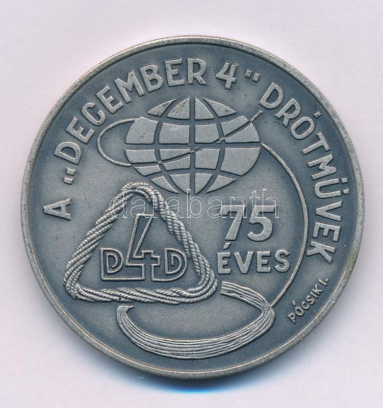 Pócsik István (1933-) 1987. "A ,,December 4'' Drótművek 75 éves / 1921-1987" kétoldalas, ezüstpatinázott fém emlékérem (42,5mm) T:AU