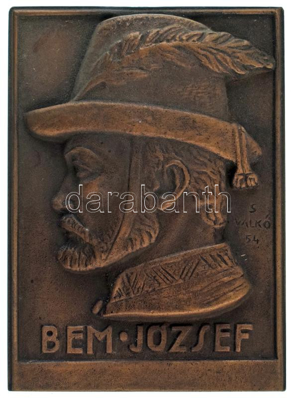 Solymári Valkó László (1909-1984) 1954. "Bem József" egyoldalas bronz plakett (92x67mm) T:AU