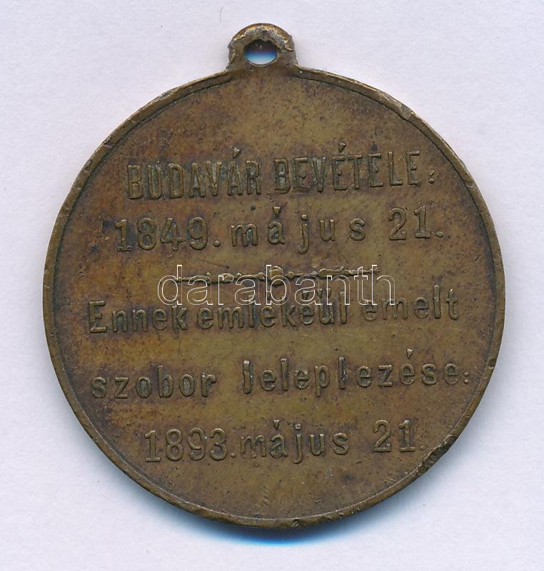 Description: 1893. "1849/49-iki HONVÉD / BUDAVÁR BEVÉTELE 1849. május 21. - Ennek emlékéül emelt szobor leleplezése 1893. május 21. " bronz emlékérem mellszalagon (34mm) T:XF,VF ph.