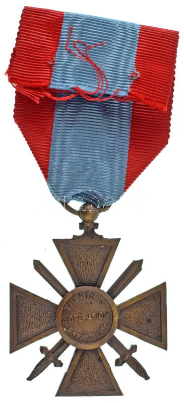 Description: Franciaország 1950-1970 k. "Külső területeken végzett katonai műveletek háborús keresztje" bronz kitüntetés, mellszalagon T:AU