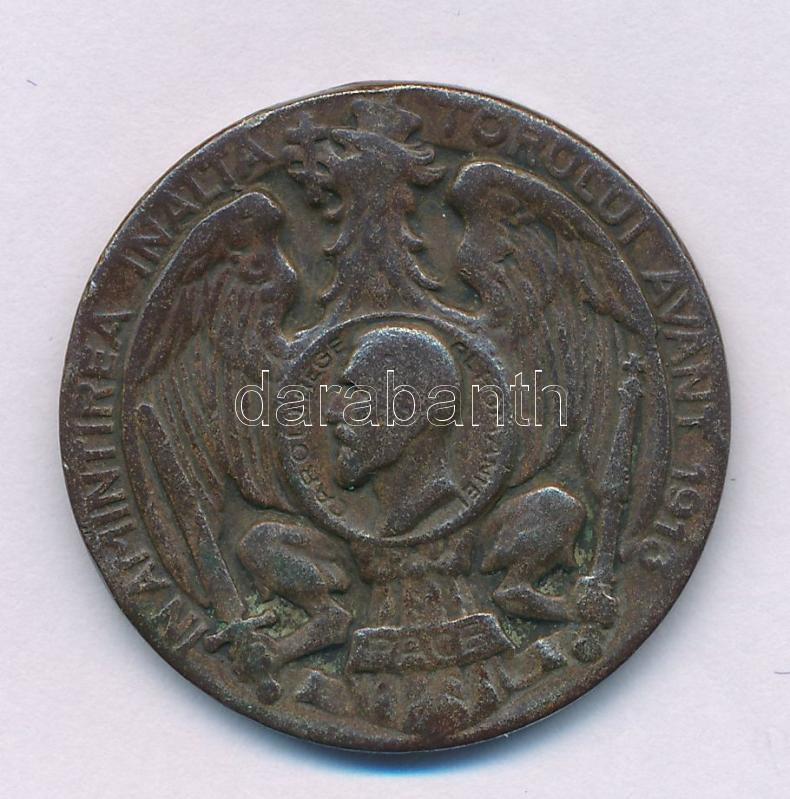 Románia 1913. "Második Balkán-háború Győzelmi Medál" "IN AMINTIREA INALTA TORULUI AVANT 1913. - CAROL I REGE AL ROMANIEI. - PACE. / DIN CARPATI PESTE DUNARE LA BALCANI." bronz kitüntetés koszorúfüzér és mellszalag nélkül T:VF,F