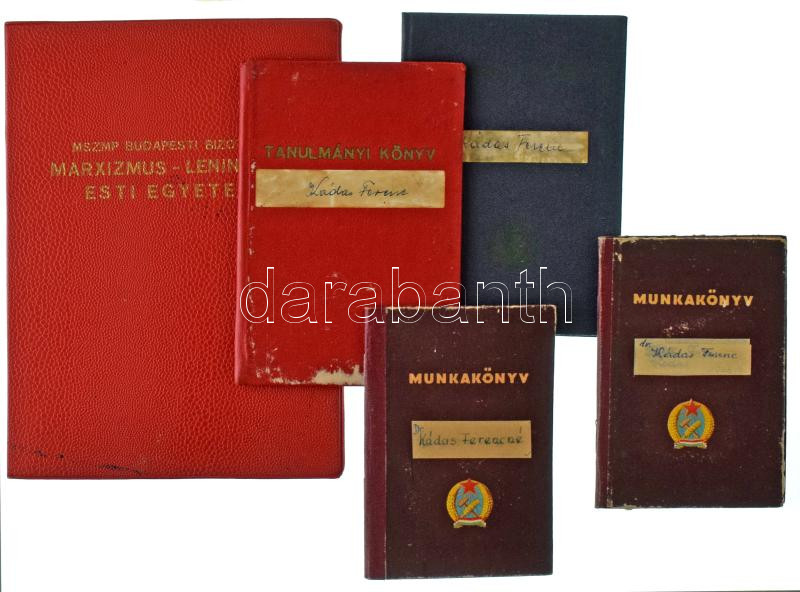Ezen kÃvül egy doktori értekezés a textilipar témájában, 21db-os papÃrtétel (egyetemi leckekönyv, munkakönyv, párttagkönyv, igazolvány, bizonyÃtvány, kitüntetések adományozói okiratai [nem mindegyik irathoz van kitüntetés], stb.) tétel. T:vegyes néhány tételen ragasztónyomok
