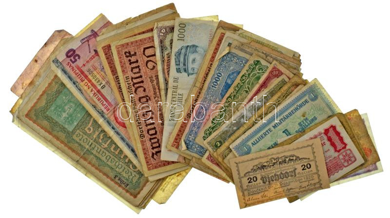 52db vegyes, főleg külföldi bankjegyből álló tétel, közte Német Birodalom, Ausztria, Olaszország, Szovjetunió, Jugoszlávia, Bulgária, Brazília, Lengyelország, stb. T:F-G (közte kevés jobb tartású darab)