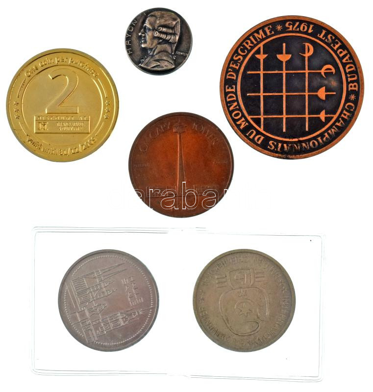 Mixed 6pcs foreign and Hungarian commemorative medallion lot, including Canada ND "CP Hotels / Calgary Tower" two-sided bronze commemorative medallion (37,5mm) + GDR ND "Halle Saale" (2xdiff) Cu-Ni commemorative medallions (35,5mm), etc. C:XF,VF, patina