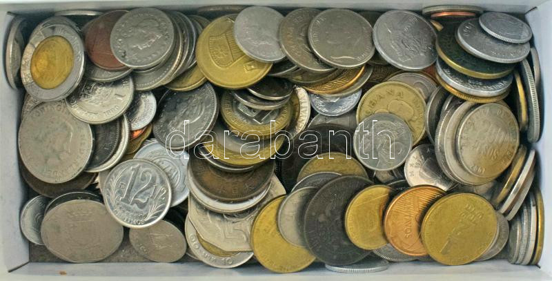Description: Vegyes külföldi fémpénz tétel ~1kg-os súlyban, csak Európán, USA-n és Kanadán kívüli érmékkel T:vegyes