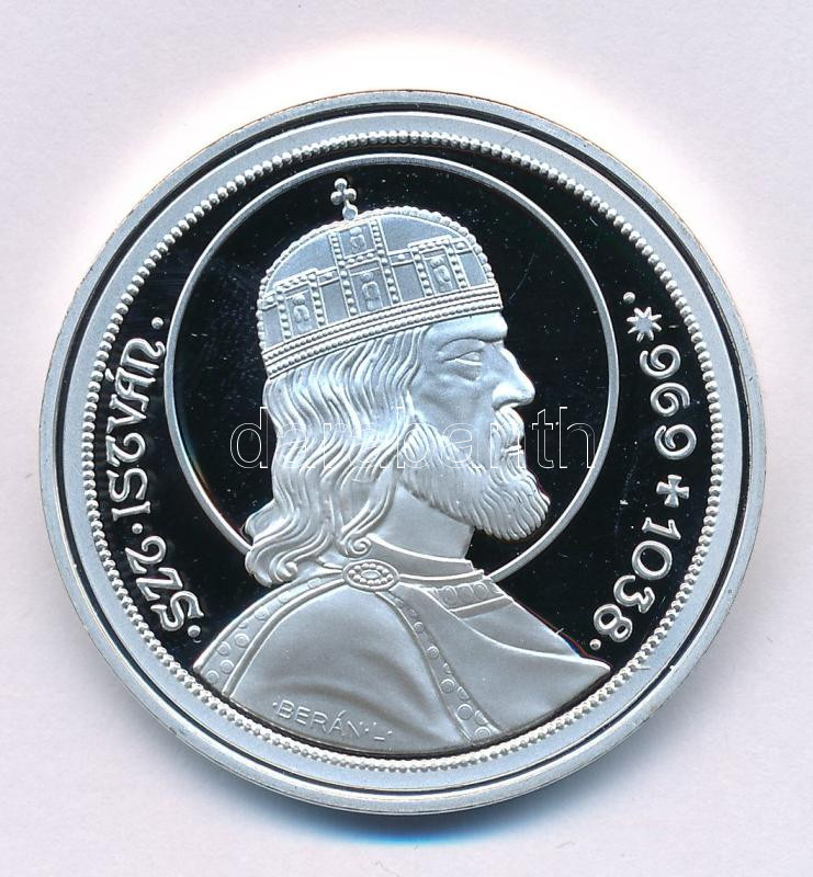DN "A legértékesebb magyar érmék - Az 1938-as Szent István 5 Pengős replikája" ezüstözött Cu emlékérem kapszulában, "COPY" jelzéssel (40mm) T:PP