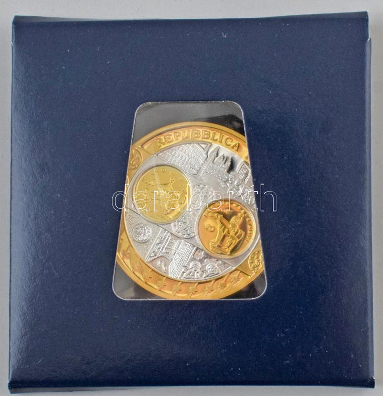 DN "Európa pénzei - Olaszország" ezüstözött, aranyozott Cu-Ni emlékérem (35,1mm) kapszulában, eredeti csomagolásban, tanúsítvánnyal T:PP