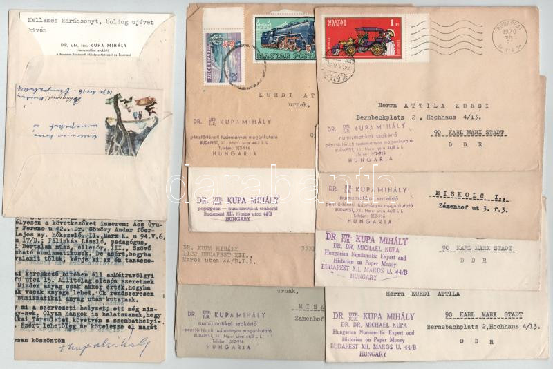 1970 k. Kupa Mihály (1941-2024) Közgazdász, numizmatikus és pénzügyminiszter 11 db levele autográf aláírással, pénzgyűjtés témában.