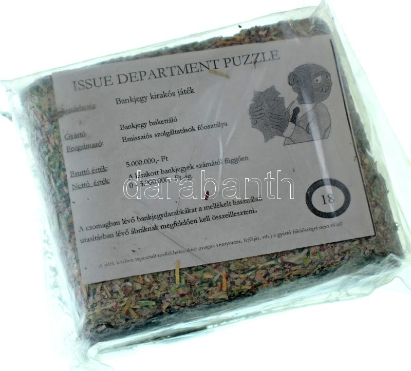 MNB "Bankjegy kirakós játék - bruttó érték 5.000.000Ft" bankjegy puzzle / bankjegytégla érvénytelenített, bedarált forintbankjegyekből