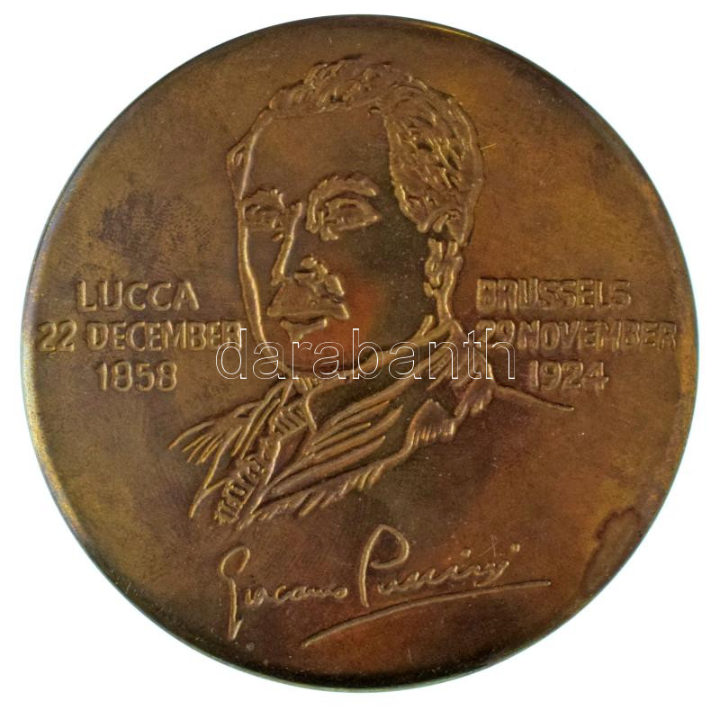 Italy ND "Giacomo Puccini - Lucca, 1858. december 22. - Brüsszel, 1924. november 29." brass etwee, with "Mottahedeh" maker's mark on the bottom (~82mm diameter, ~11mm inner-height) C:XF, patina
