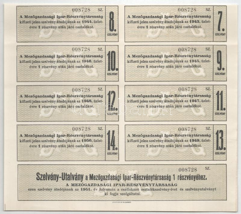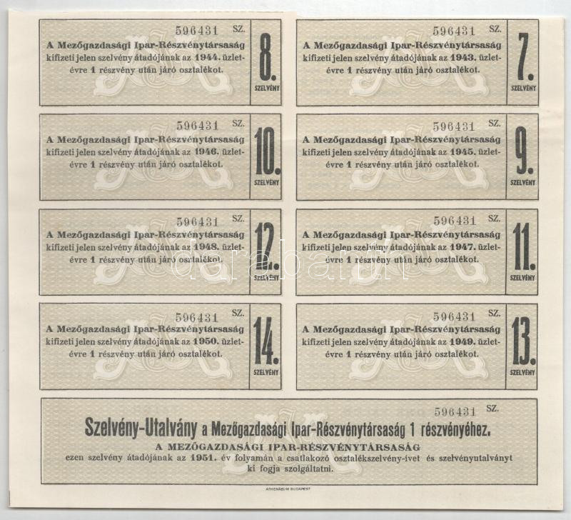 1922. Budapest "Mezőgazdasági Ipar-Részvénytársaság" részvén...