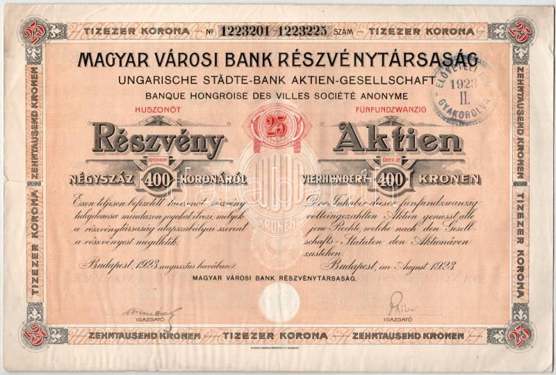 https://www.darabanth.com/en/514-Auction-philately-postcards-numismatics-artwork-books-colletibles-jewelry/515.0/Numismatics/Shares-and-Tickets~1307/1923-Budapest-Magyar-Varosi-Bank-Reszvenytarsasag-25-reszvenye-egyben-egyenkent-400K-ro~II3063452