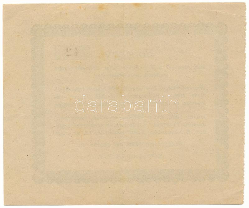 1925. Békéscsaba "Körösvidék R.-T." sorsjegy 100 mázsa bükk-...