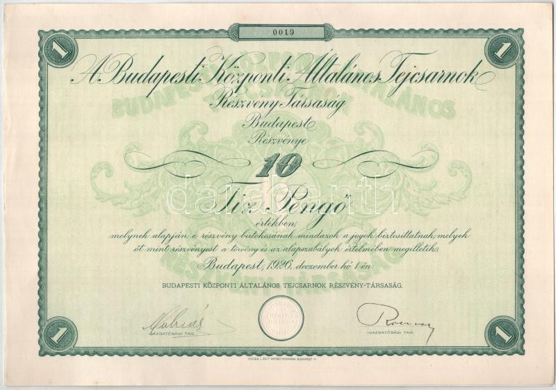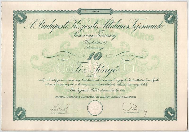 https://www.darabanth.com/en/514-Auction-philately-postcards-numismatics-artwork-books-colletibles-jewelry/515.0/Numismatics/Shares-and-Tickets~1307/1926-Budapest-3Cem3EBudapesti-Kozponti-Altalanos-Tejcsarnok-Reszvenytarsasag3Cem3E-reszveny~II2970573