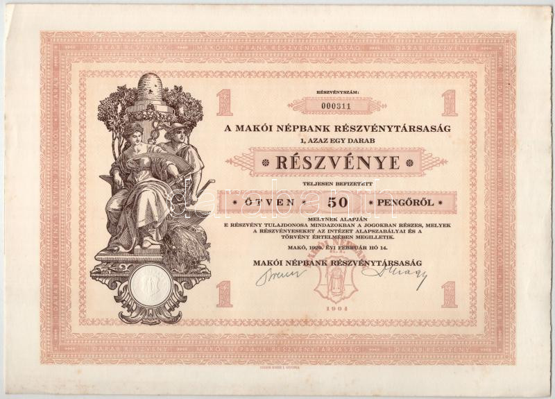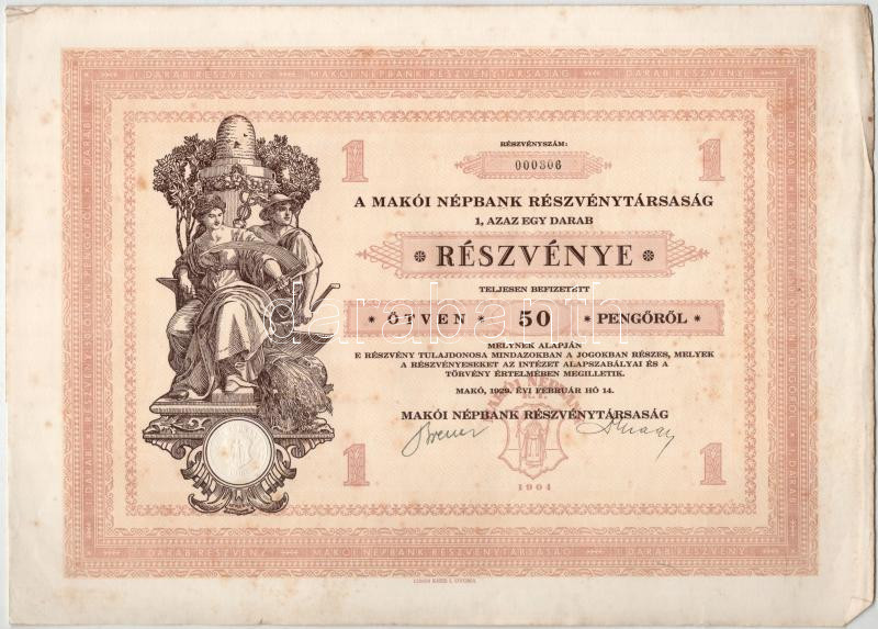 https://www.darabanth.com/en/514-Auction-philately-postcards-numismatics-artwork-books-colletibles-jewelry/515.0/Numismatics/Shares-and-Tickets~1307/1929-Mako-Makoi-Nepbank-Reszvenytarsasag-reszvenye-50P-rol-szelvenyekkel-szarazpecsC3~II3063446