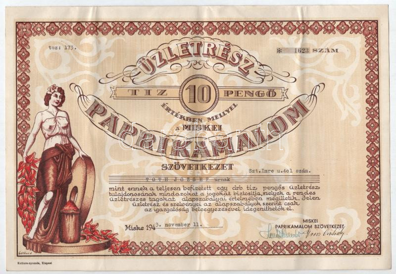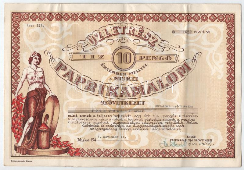 https://www.darabanth.com/en/514-Auction-philately-postcards-numismatics-artwork-books-colletibles-jewelry/515.0/Numismatics/Shares-and-Tickets~1307/1942-Miske-Miskei-Paprikamalom-Szovetkezet-uzletreszjegye-10P-rol-3x-sorszamkovetok-16~II3282160
