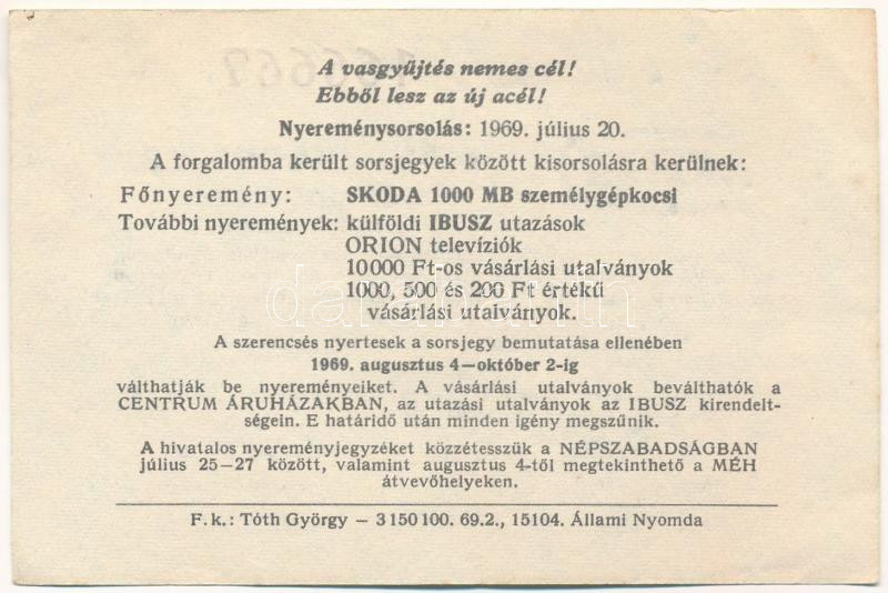 1969. "MÉH (Melléktermék és Hulladékhasznosítási Tröszt)" XII. osztályú ajándéksorsjegye "166667" sorszámmal T:VF