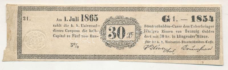 Ausztria 1865. 1854-es osztrák államkötvény 30kr értékű szelvénye vízjeles papíron T:XF