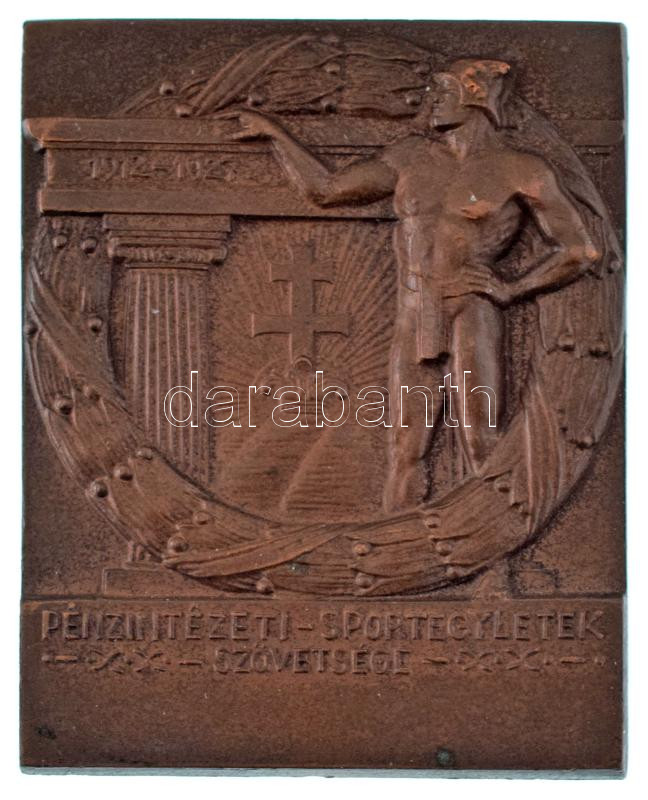 1927. "Pénzintézeti Sportegyesületek Szövetsége 1912-1927" bronz plakett (56x44mm) T:AU patina