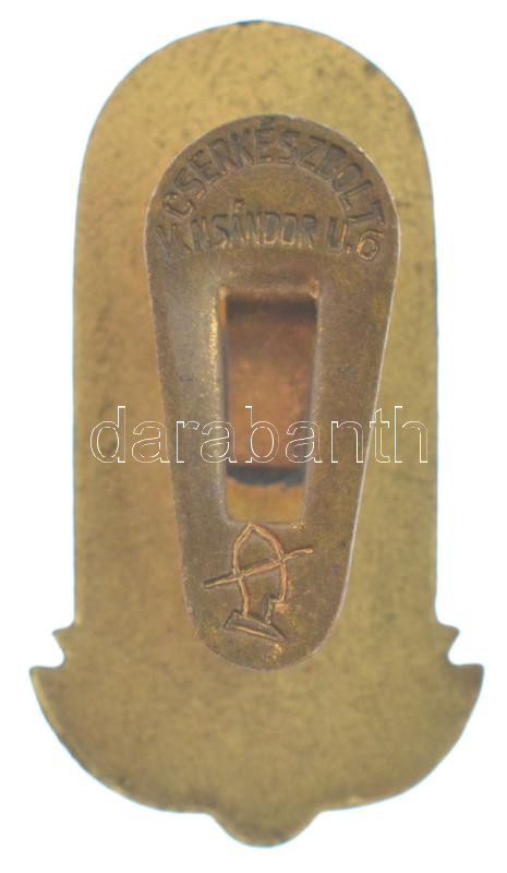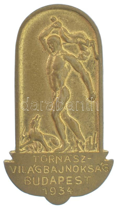 1934. "Tornász Világbajnokság Budapest" aranyozott Br gomblyukjelvény "Cserkészbolt V. N Sándor u.6." gyártói jelzéssel (30x16mm) T:AU