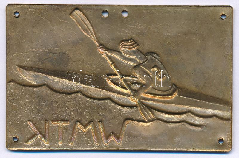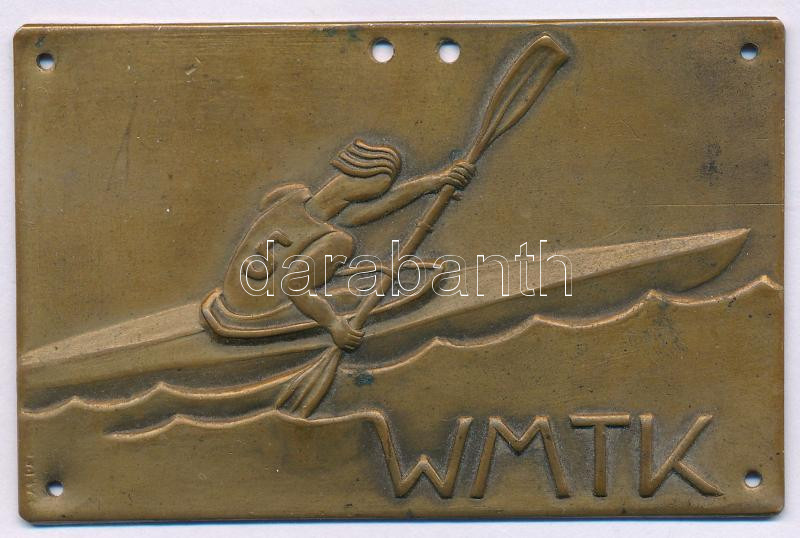 1940 k. "WMTK" (Weiss Manfréd Testedző Kör) egyoldalas bronz lemezplakett, rögzítéshez szükséges lyukakkal. Szign.: Fonyó Márton (1896-1989) (47x72mm) T:XF