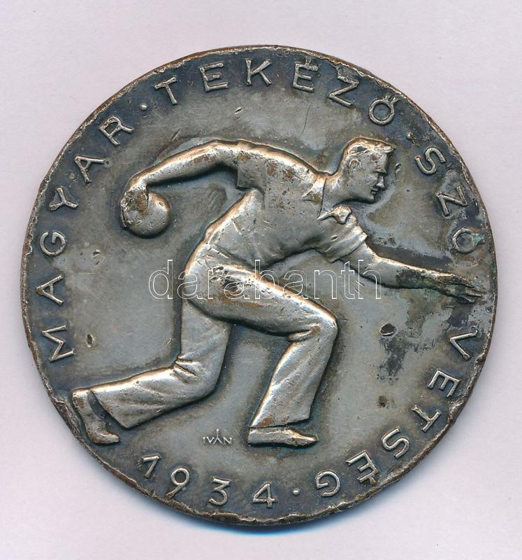1950. "Magyar Tekéző Szövetség 1934 - NB II CSB. II 1950" kétoldalas, ezüstözött bronz díjérem. Szign.: Iván István (1905-1968) (50mm) T:VF, patina, peremhiba, ezüstözés kopás