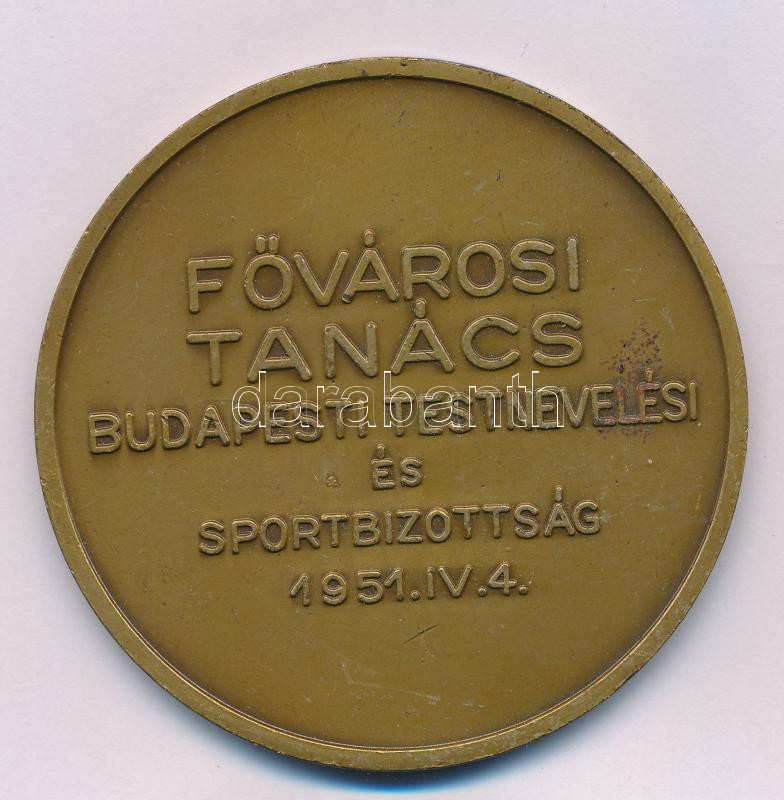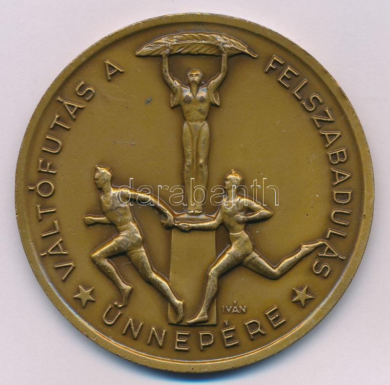 1951. "Váltófutás a felszabadulás ünnepére / Fővárosi Tanács, Budapesti Testnevelési és Sportbizottság 1951. IV. 4." kétoldalas bronz emlékérem. Szign.: Iván István (1905-1968) (65mm) T:XF
