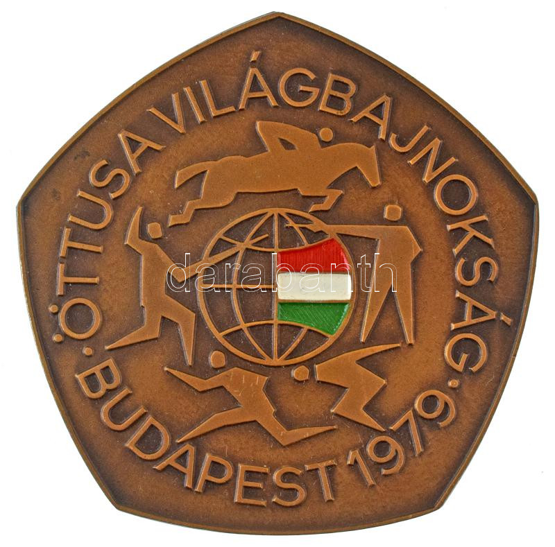 1979. "Öttusa Világbajnokság Budapest" egyoldalas, részben festett bronz emlékérem (80mm) T:AU