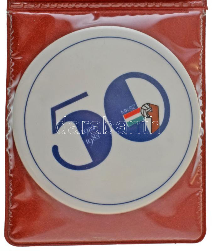 1983. "A Magyar Kézilabda Szövetség 50. évfordulójára" egyoldalas Hollóházi porcelán emlékérem, eredeti lezárt műbőr tokban, meghívóval (118mm) T:UNC