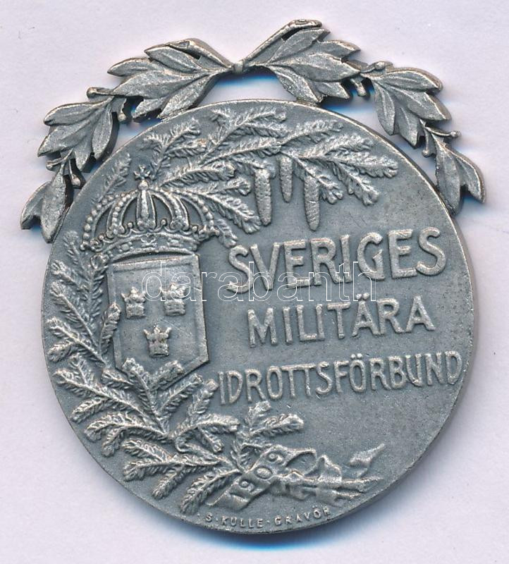 Svédország 1946. "Svéd Katonai Sportszövetség / Pisztoly m/07" kétoldalas fehérfém díjérem koszorús díszítménnyel. Szign.: "S. Kulle" (~38,5mm) T:AU