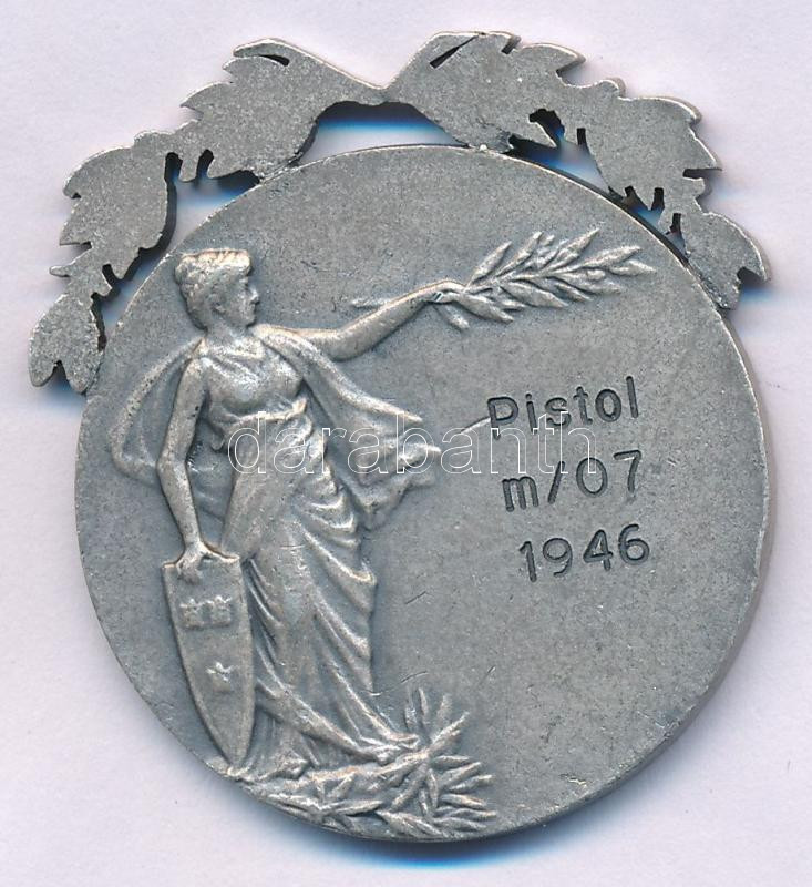 Sweden 1946. "Sveriges Militära Idrottsförbund / Pistol m/07" two-sided white metal award medal with wreath decoration. Sign.: "Sven Kulle" (~38,5mm) C:AU