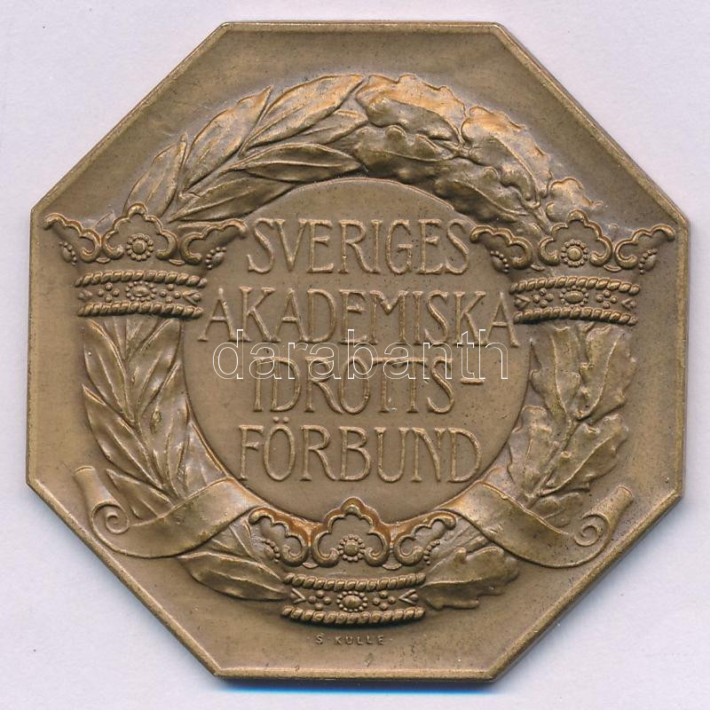 Svédország 1957. "Svéd Akadémiai Sportszövetség / Úszás" egyoldalas bronz díjérem, "SPORRONG&CO" gyártói jelzéssel- és gravírozással a hátoldalon. Szign.: "S. Kulle" (~46x46mm) T:AU