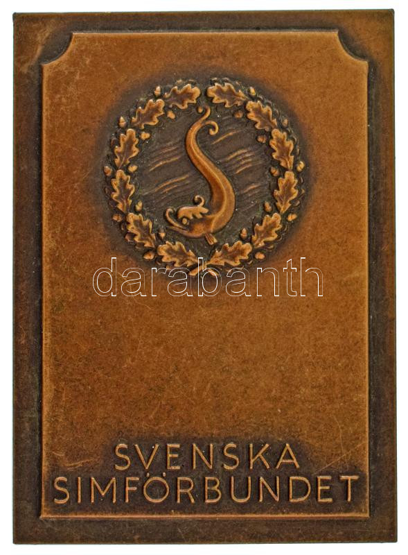 Svédország DN "Svéd Úszószövetség" egyoldalas bronz emlékplakett, "SPORRONG&CO. STOCKHOLM" gyártói jelzéssel- és "453" számozással a hátoldalon (53x73mm) T:XF