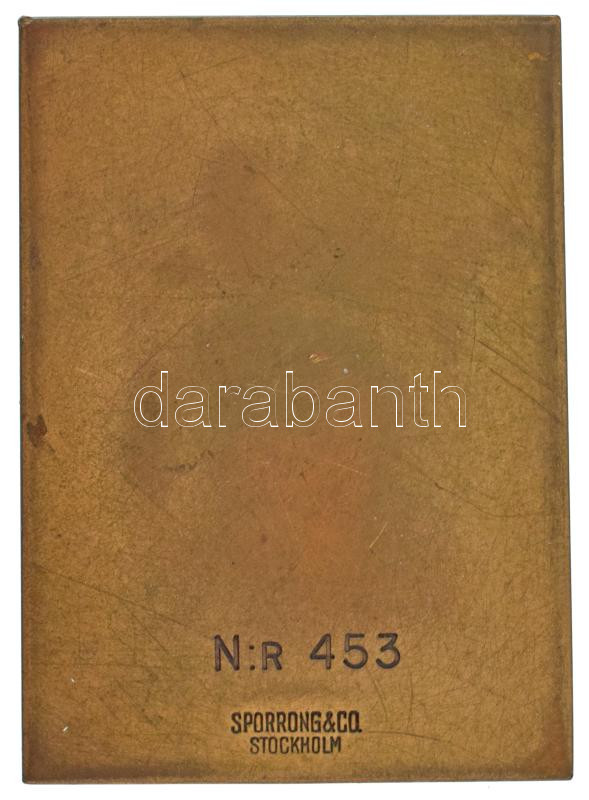 Sweden ND "Svenska Simförbundet" one-sided bronze commemorative plaque with "SPORRONG&CO. STOCKHOLM" maker's mark- and numbered "453" on the reverse (53x73mm) C:XF