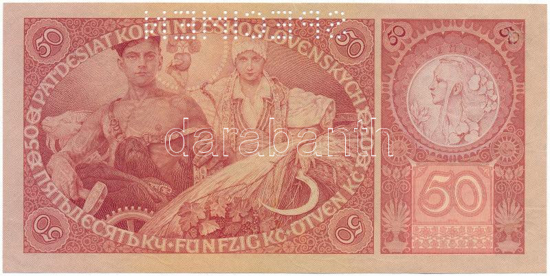Csehszlovákia 1929. 50K "SPECIMEN (MINTA)" perforációval "Ia 614854" T:UNC Czechoslovakia 1929. 50 Korun with "SPECIMEN" perforation "Ia 614854" C:UNC
