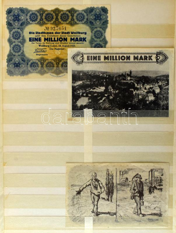 Körülbelül 240db-os főleg német bankjegyből és papír szükségpénzből álló gyűjtemény bélyegberakóban, közte Német Birodalom, Weimari Köztársaság, NDK, Harmadik Birodalom, amerikai megszálló csapatok T:vegyes