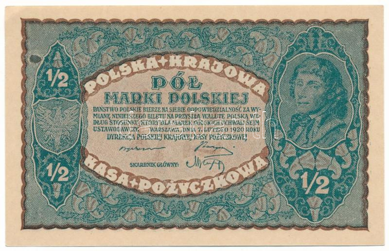 Lengyelország 1920. 1/2M T:XF sarokhajlás, folt