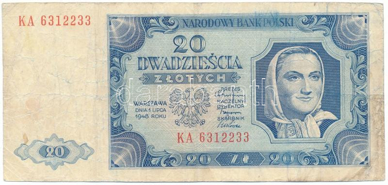 Poland 1948. 20 Złotych "KA 6312233" C:F