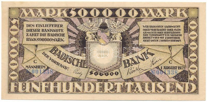 Német Birodalom / Baden 1923. 500.000M T:AU,XF, kis sarokhajtás, ragas... https://www.darabanth.com/en/514-Auction-philately-postcards-numismatics-artwork-books-colletibles-jewelry/515.0/Numismatics/Worldwide-banknotes~1316/Nemet-Birodalom-Baden-1923-500000M-TAU-XF-kis-sarokhajtas-ragasztonyom3Cbr-3E-German-Empir~II3459619