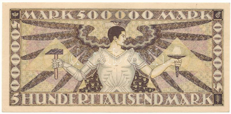 Description: Német Birodalom / Baden 1923. 500.000M T:AU,XF, kis sarokhajtás, ragasztónyom