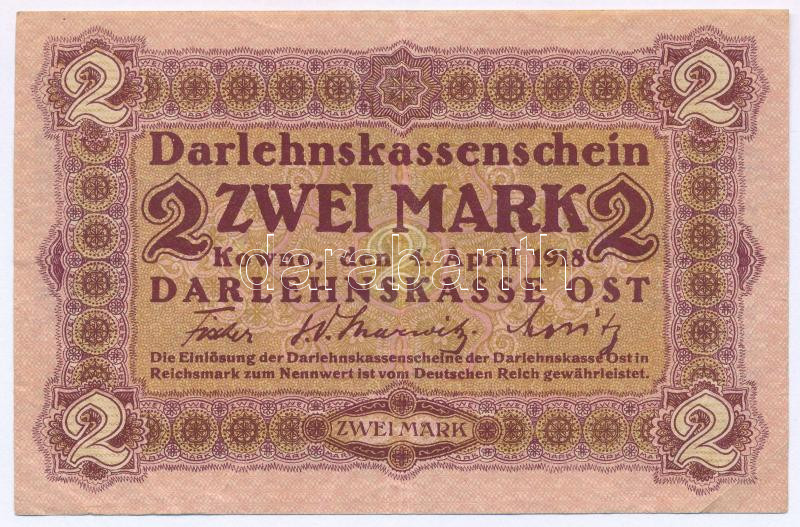 Német Birodalom / I. világháború / Keleti Főparancsnokság / Kowno (Kau... https://www.darabanth.com/en/514-Auction-philately-postcards-numismatics-artwork-books-colletibles-jewelry/515.0/Numismatics/Worldwide-banknotes~1316/Nemet-Birodalom-I-vilaghaboru-Keleti-Foparancsnoksag-Kowno-Kaunas-1918-2M-Darlehnsk~II3479560