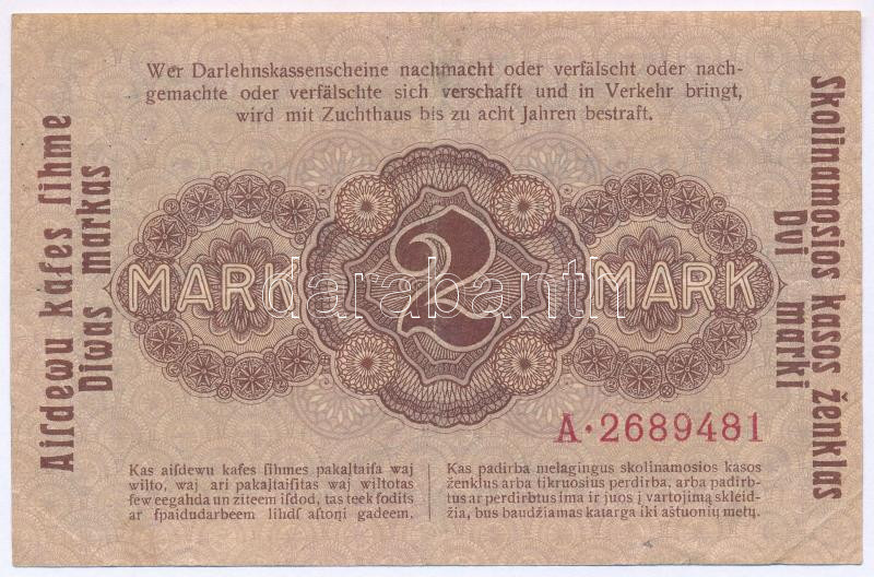 Description: Német Birodalom / I. világháború / Keleti Főparancsnokság / Kowno (Kaunas) 1918. 2M "Darlehnskasse Ost" T:F erős papír
